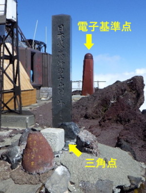 と、ここでお話をしめたかったのですが、2002年に国土地理院が新しく電子基準点というものを設置しました。GPSを使って正確に測定する装置です。それは3mの柱の上に設置されているため、基準点としては一番高い標高(3777.5m)になったそうです。(わけわからなくなるので整理しましょう)