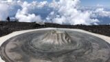 当然ここでみんな記念撮影ですよね。皆さん順番に並んで協力しあって撮ってます。富士山登頂成功すると人はみな優しい心になるんですかね。素晴らしい!!石碑越しには富士山頂部の火口、大内院が見えます。では、その他の様子もご覧ください。まずは富士山頂の二等三角点からいきましょう。